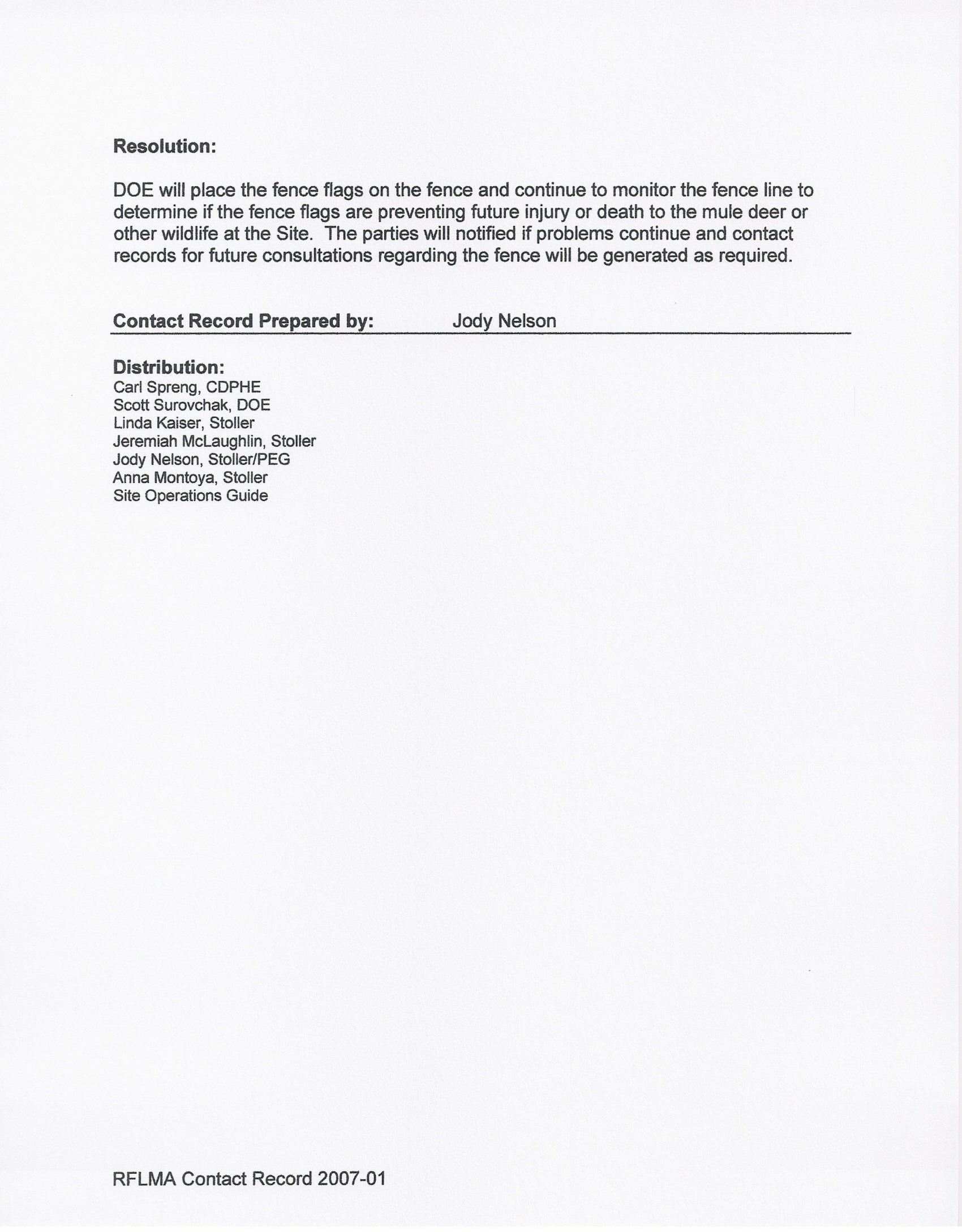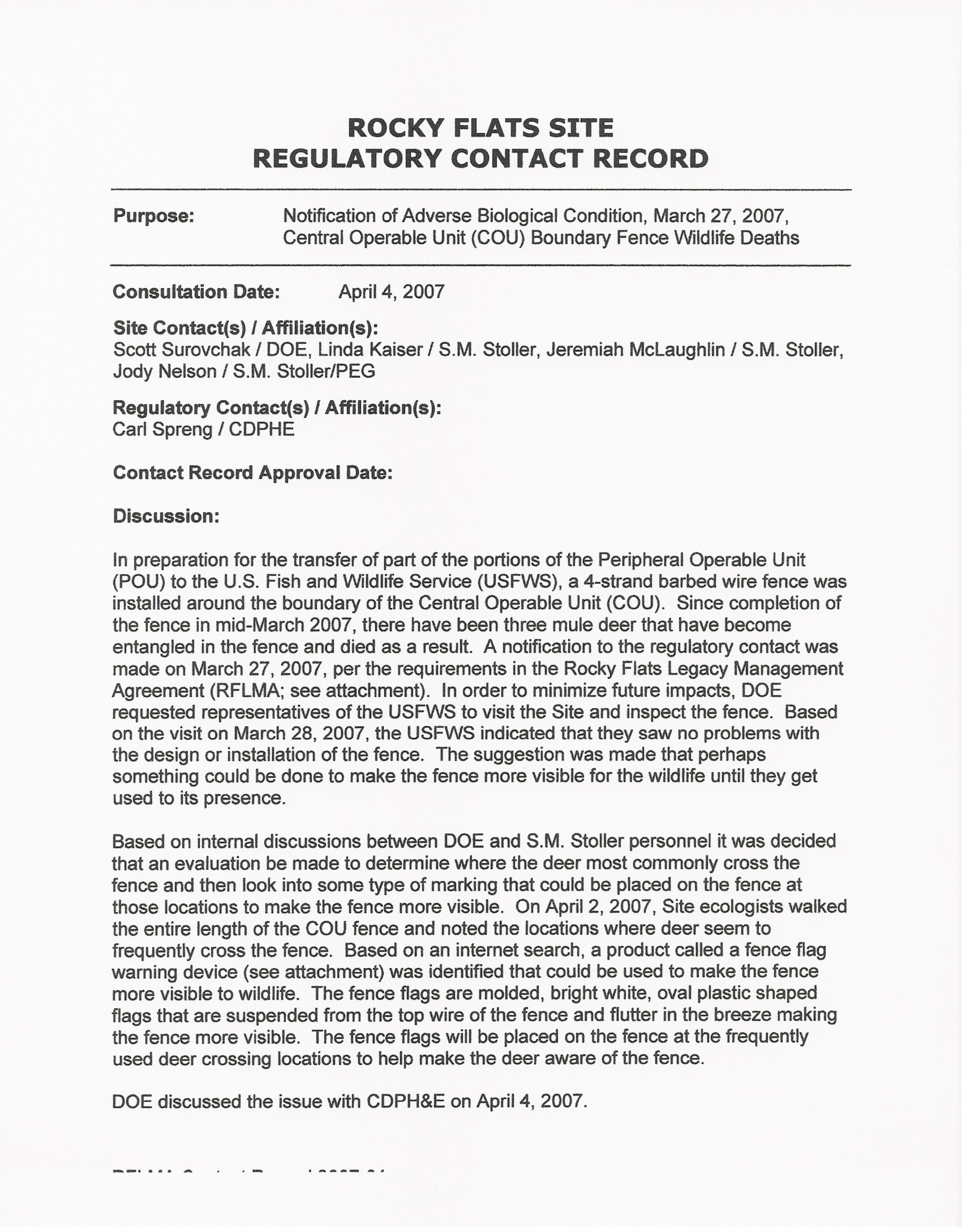 record was submitted to CDPHE after three deer were killed on the new COU fence. After the