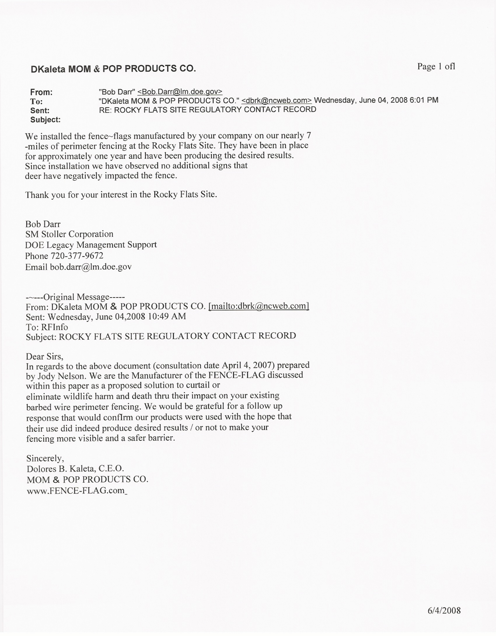 at Rocky Flats. A hearing is scheduled for January 2009. The site has petitioned to adopt the